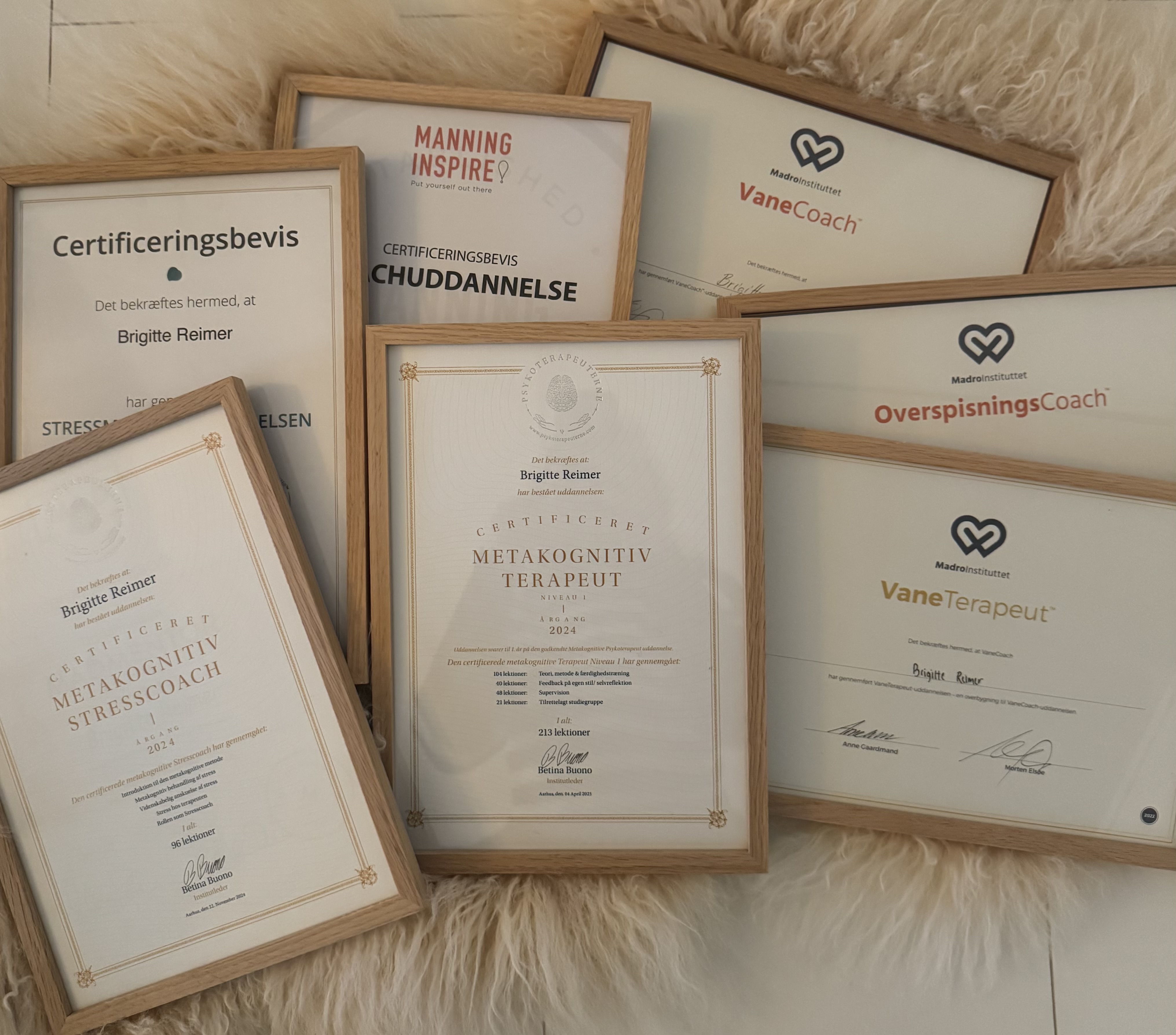 Jeg bygger mit arbejde på mange års uddannelse og erfaring med mennesker i forandring – både som metakognitiv terapeut og gennem mit arbejde som sygeplejerske, coach og vaneterapeut. Jeg møder mennesker i vidt forskellige livssituationer og uanset hvor du står i dit liv lige nu, er du velkommen her. Hos mig får du støtte til at skabe forandringer, der kan mærkes – i dit tempo og på dine præmisser.